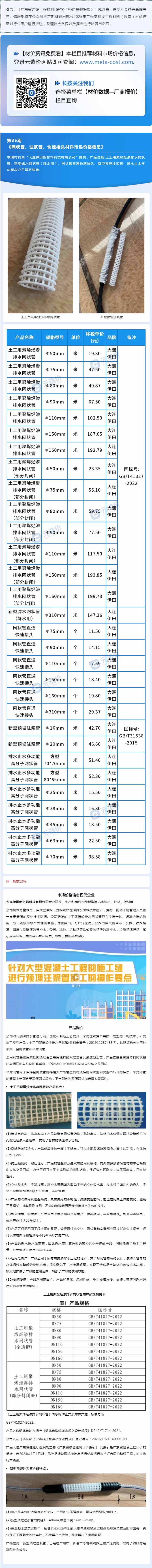 廣東省建設工程材料(設備)參考信息第35期——網(wǎng)狀管、注漿管、快速接頭材料市場價格信息