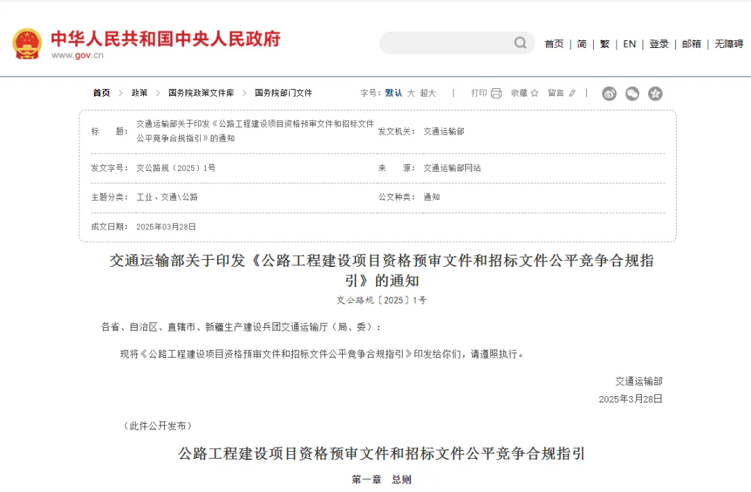 交通運輸部關(guān)于印發(fā)《公路工程建設(shè)項目資格預(yù)審文件和招標文件公平競爭合規(guī)指引》的通知