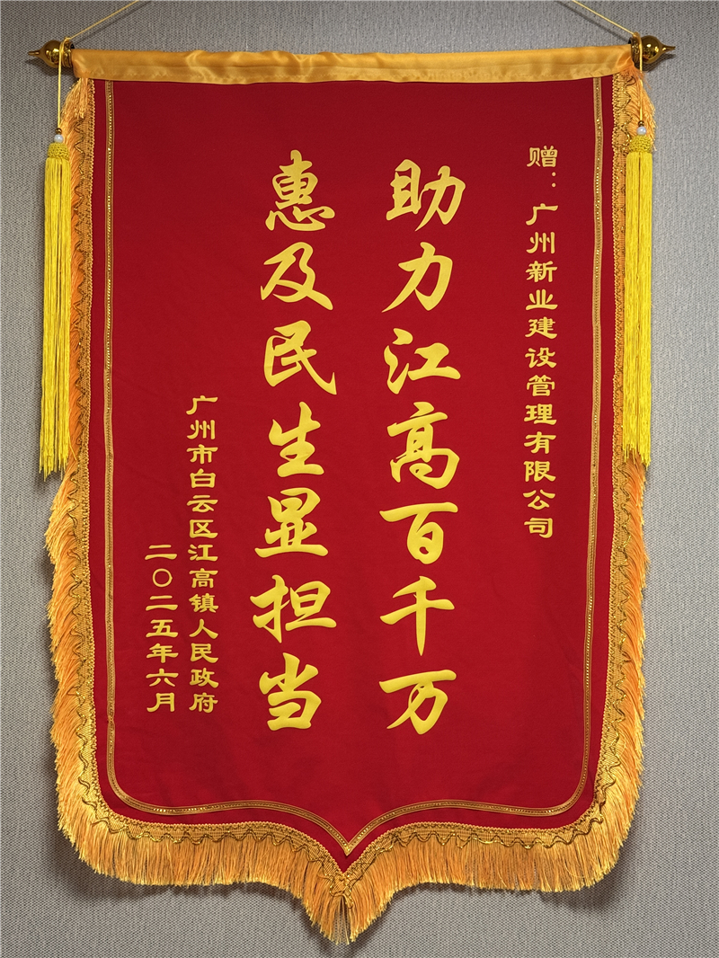 感謝廣州市白云區(qū)江高鎮(zhèn)人民政府送給新業(yè)公司錦旗